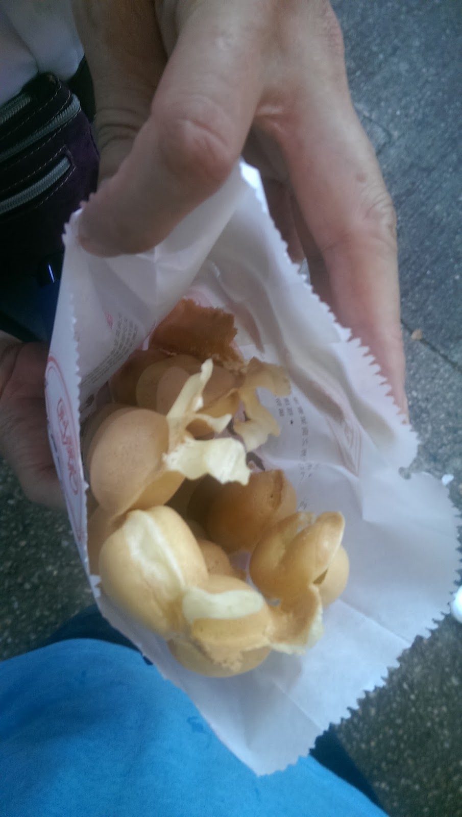 天后廟是 1900 年左右的古蹟,外表古色古香,門口的廟埕規劃成一個公園,感覺很幽靜。逛完之後,搭乘地鐵到隔壁站佐敦,品嚐北角利強記雞蛋仔