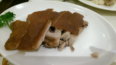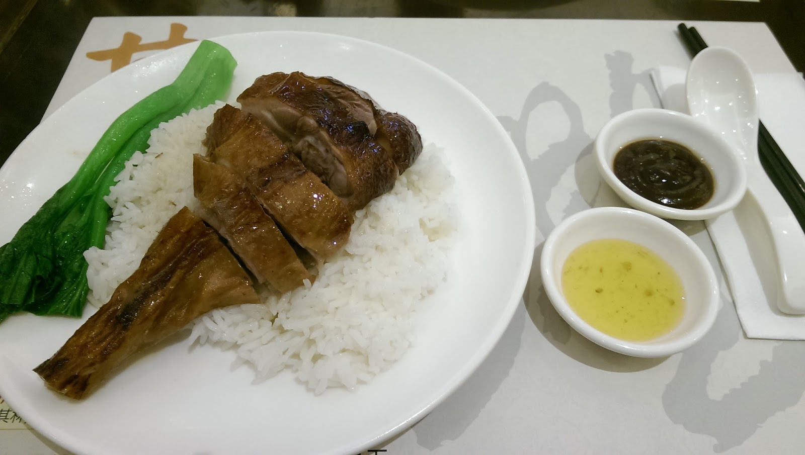 我點了燒鵝肶(腿)飯和額外點一盤烤豬,實在不便宜,但考慮到難得來一趟,就忍痛吃了。果然名不虛傳!燒鵝油亮多汁,可惜皮是軟的。至於豬肉皮非常的酥脆,口感一流。飯是使用長米,淋上特製醬汁,很香但是不鹹,實在好吃!幸好也是十一點多開店就去了,到十二點多外面已經大排長龍。