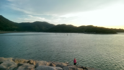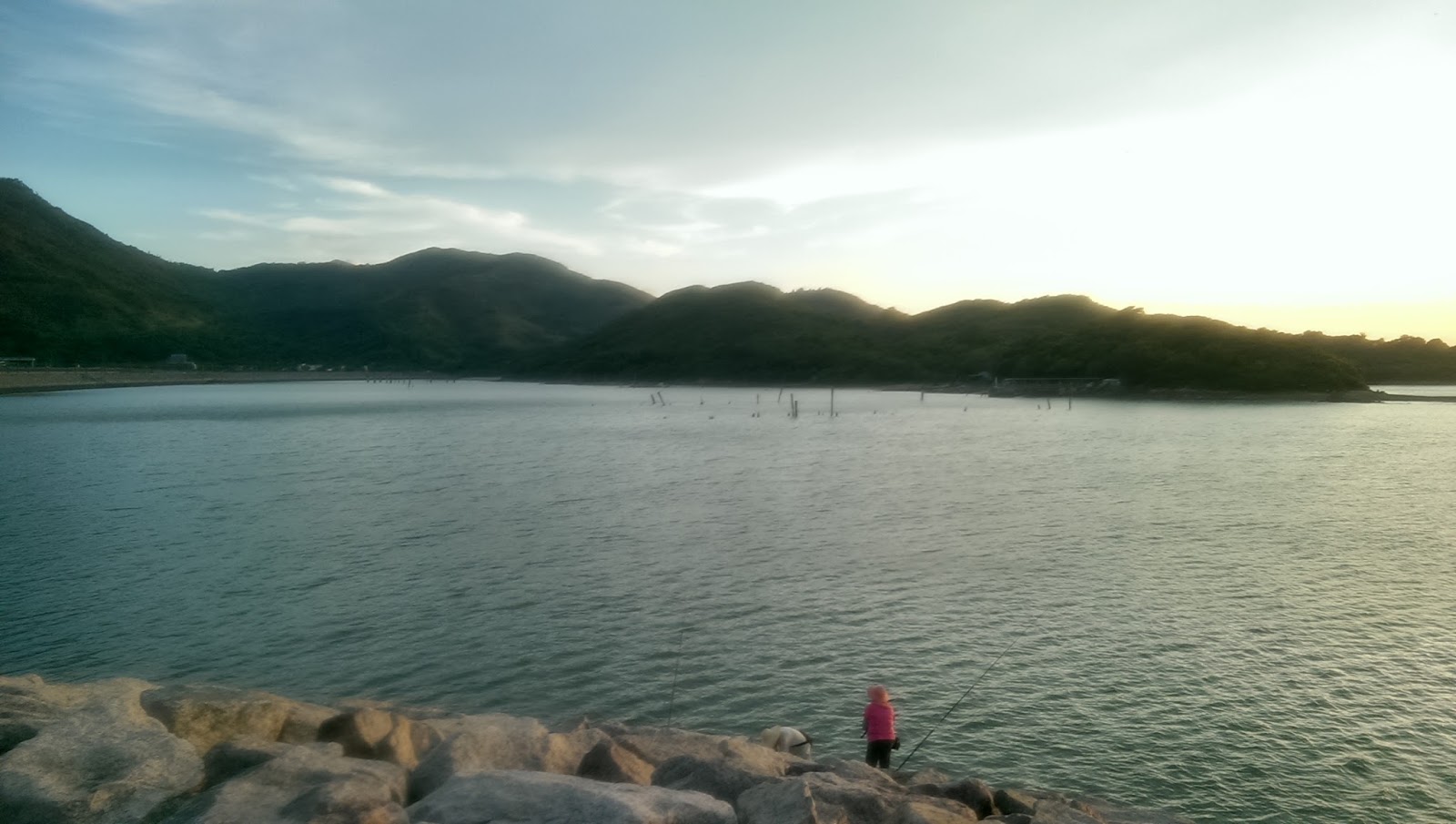 成為迪士尼轉車站之後,遊客多半在此轉往迪士尼,而很少造訪欣澳當地。我原本只是帶著無聊四處看看的想法,不料出站之後就是一片美景。正好當時以近黃昏,意外在寧靜的海堤上,捕獲了夕陽下山的一刻。