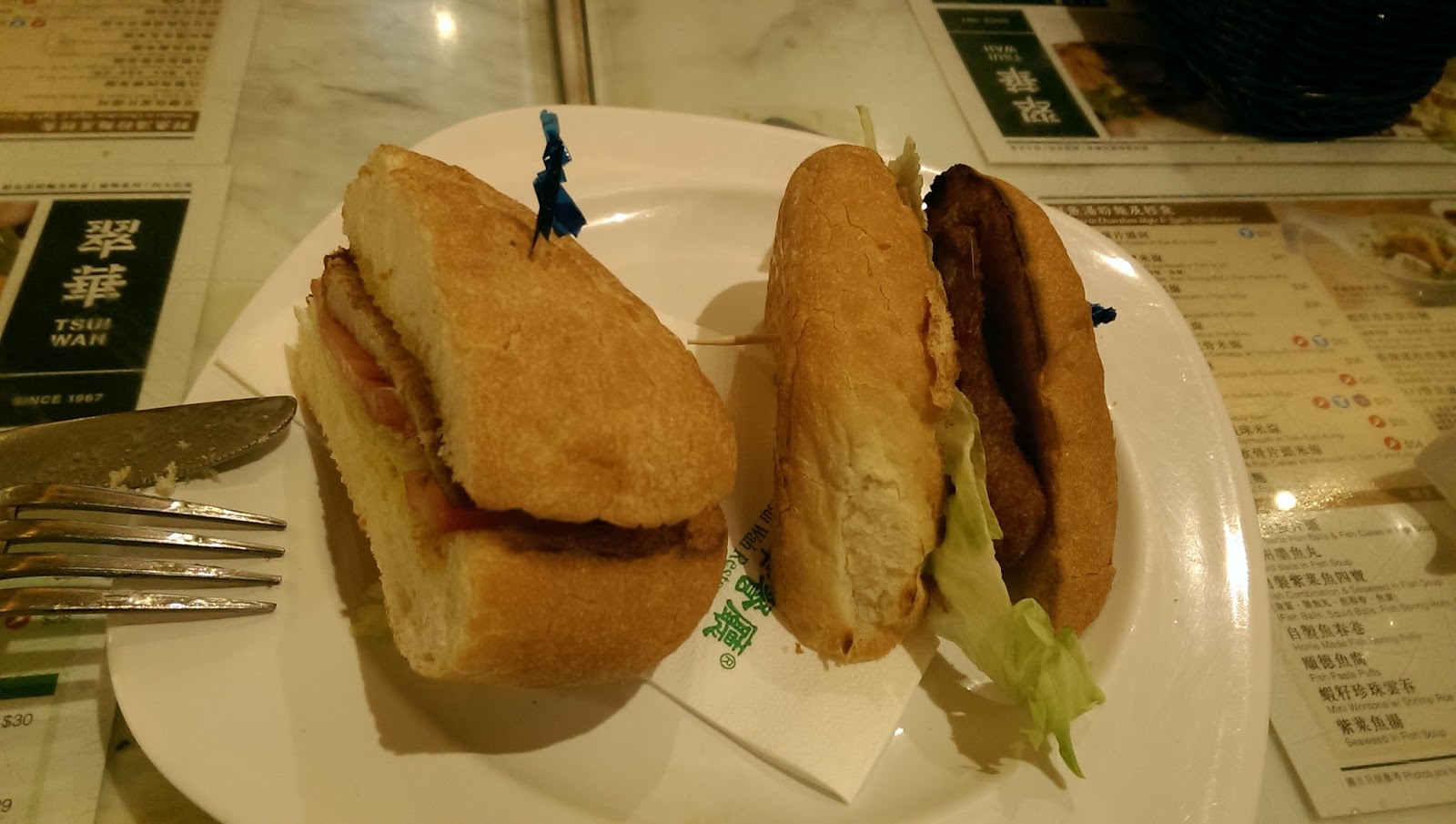 豬扒包是個有趣的港式餐點,西式漢堡,外皮考得酥脆,包上中式排骨,意外好吃。