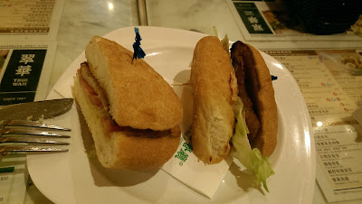 為了避免跟太平山一樣被卡在山上等不到車下山的慘劇重演,這次提早下山。回程也搭了纜車,下山後到一旁東薈城購物中心旁,知名的翠華餐廳連鎖店,品嚐港式餐點。